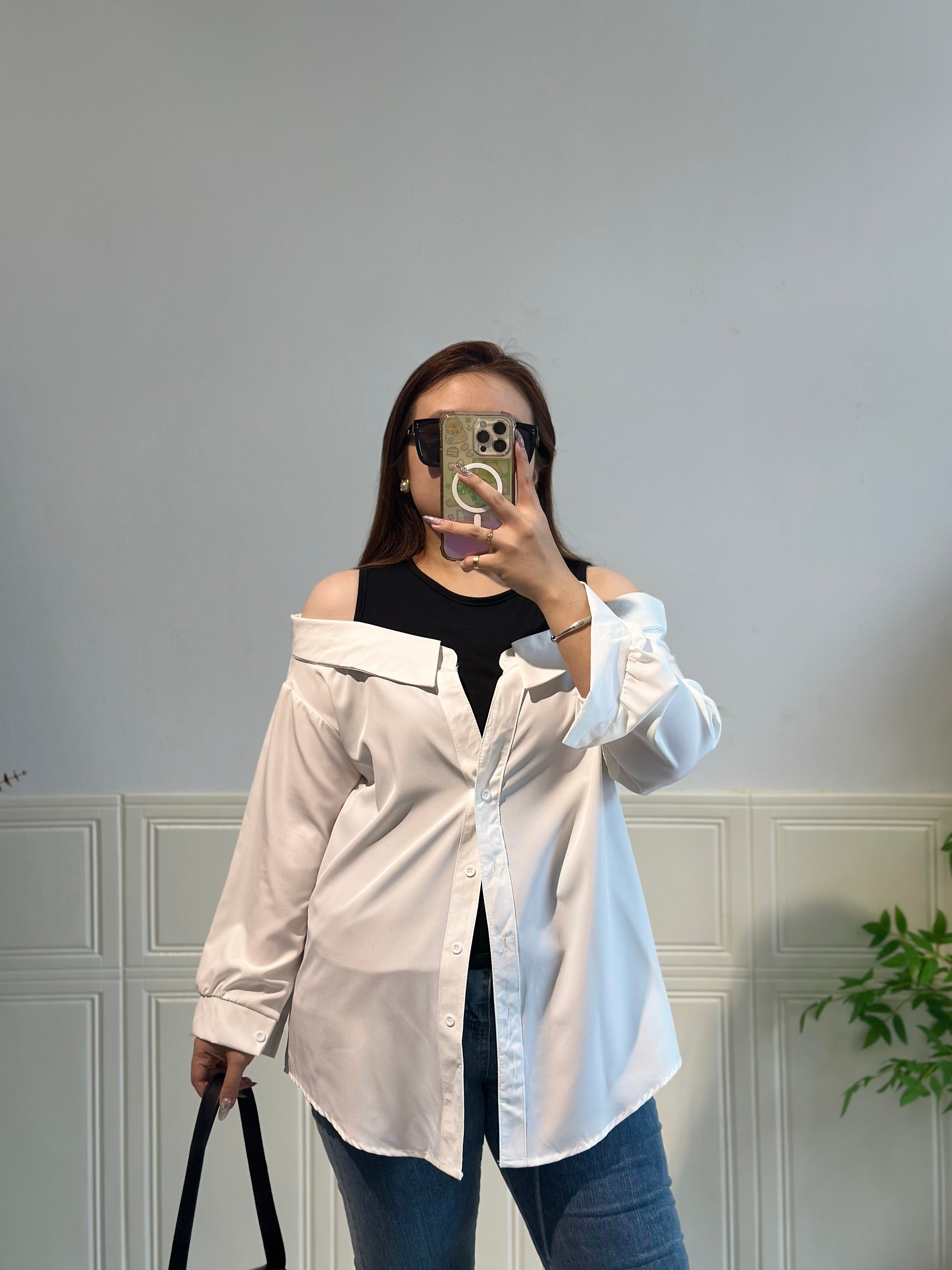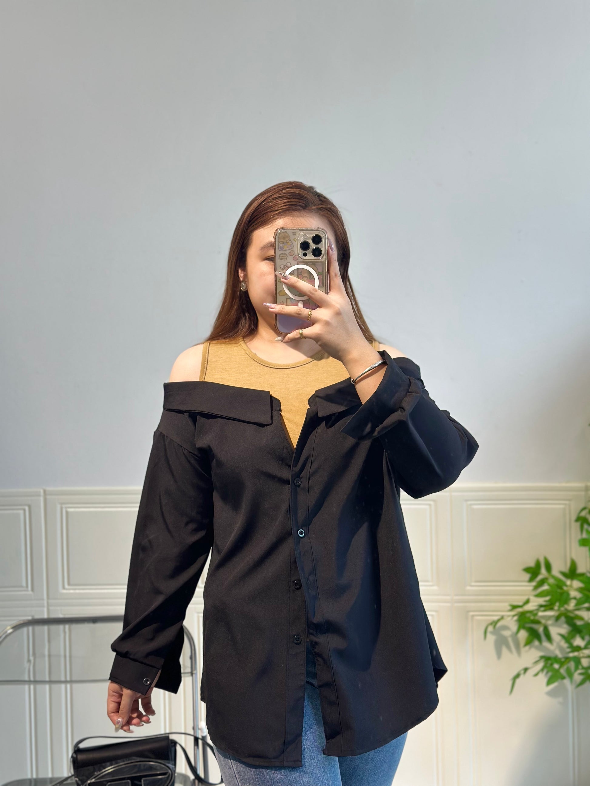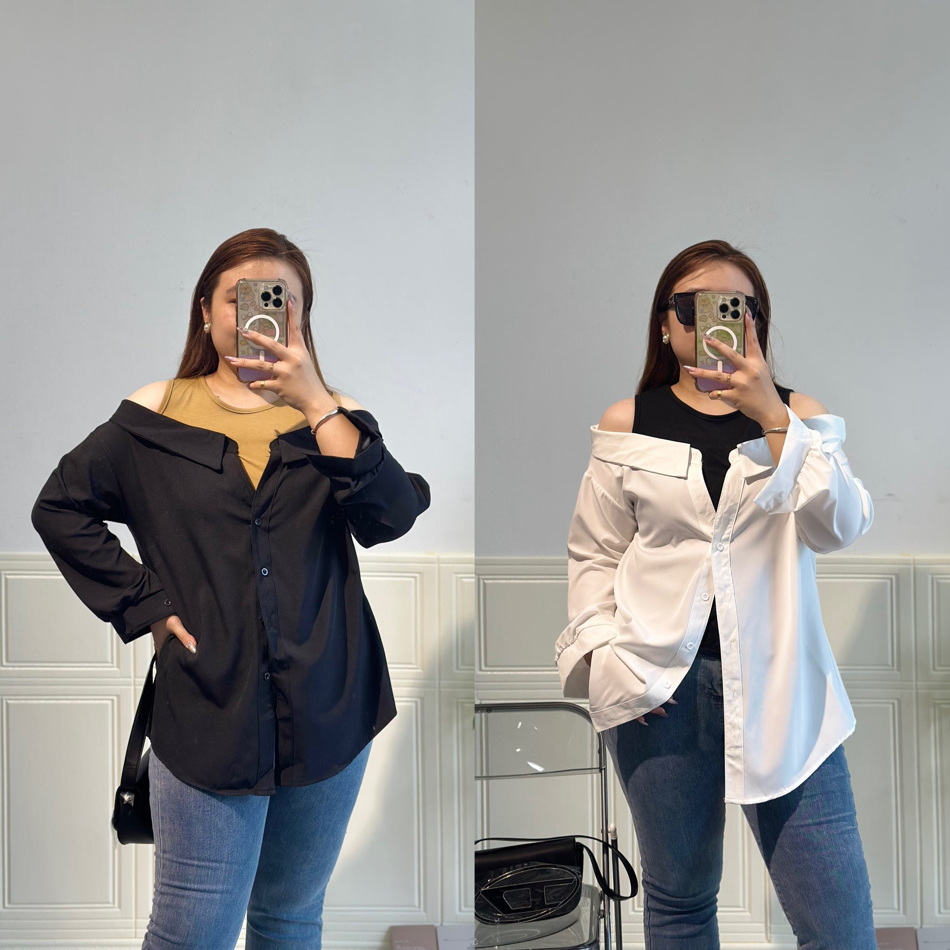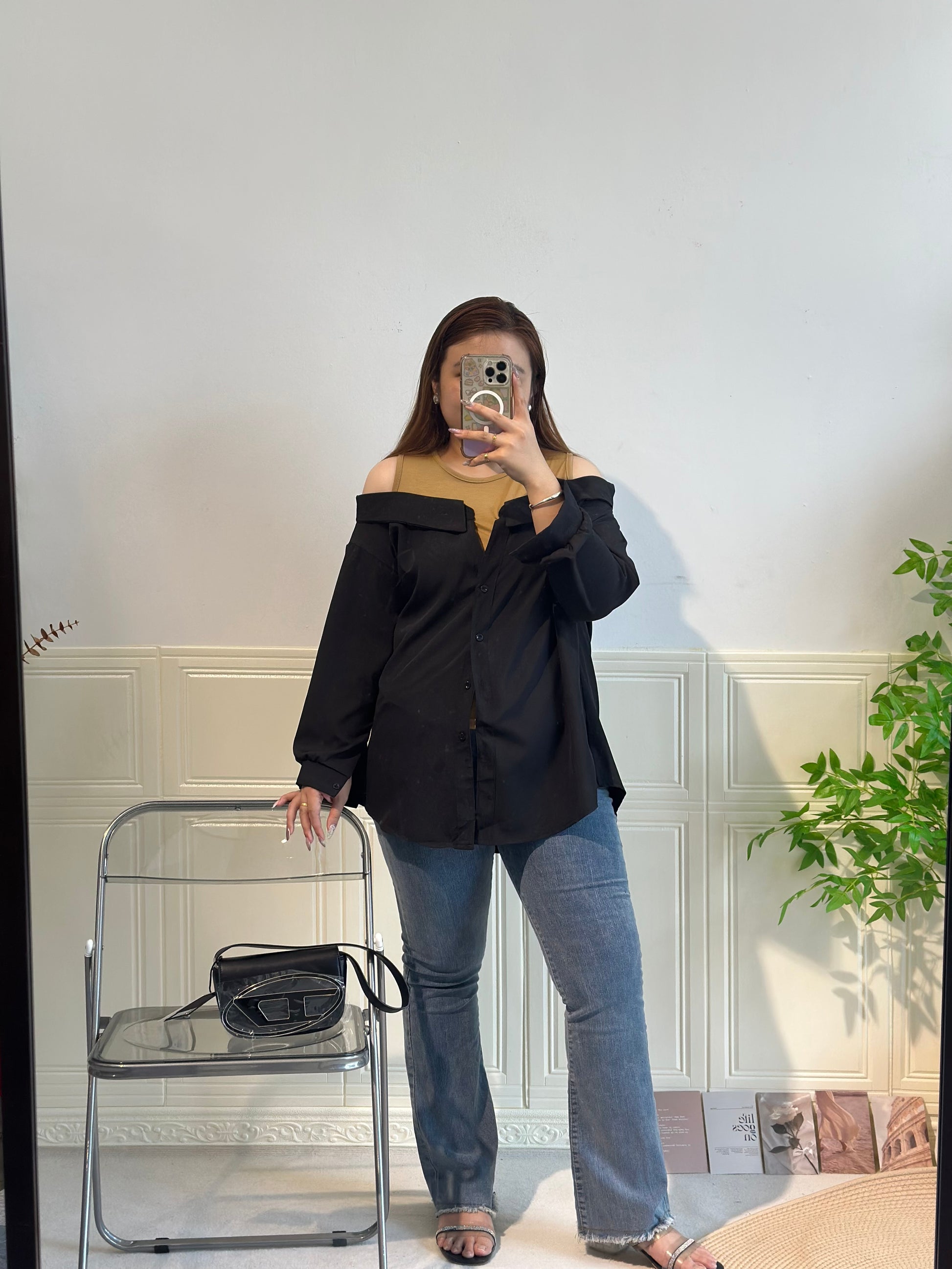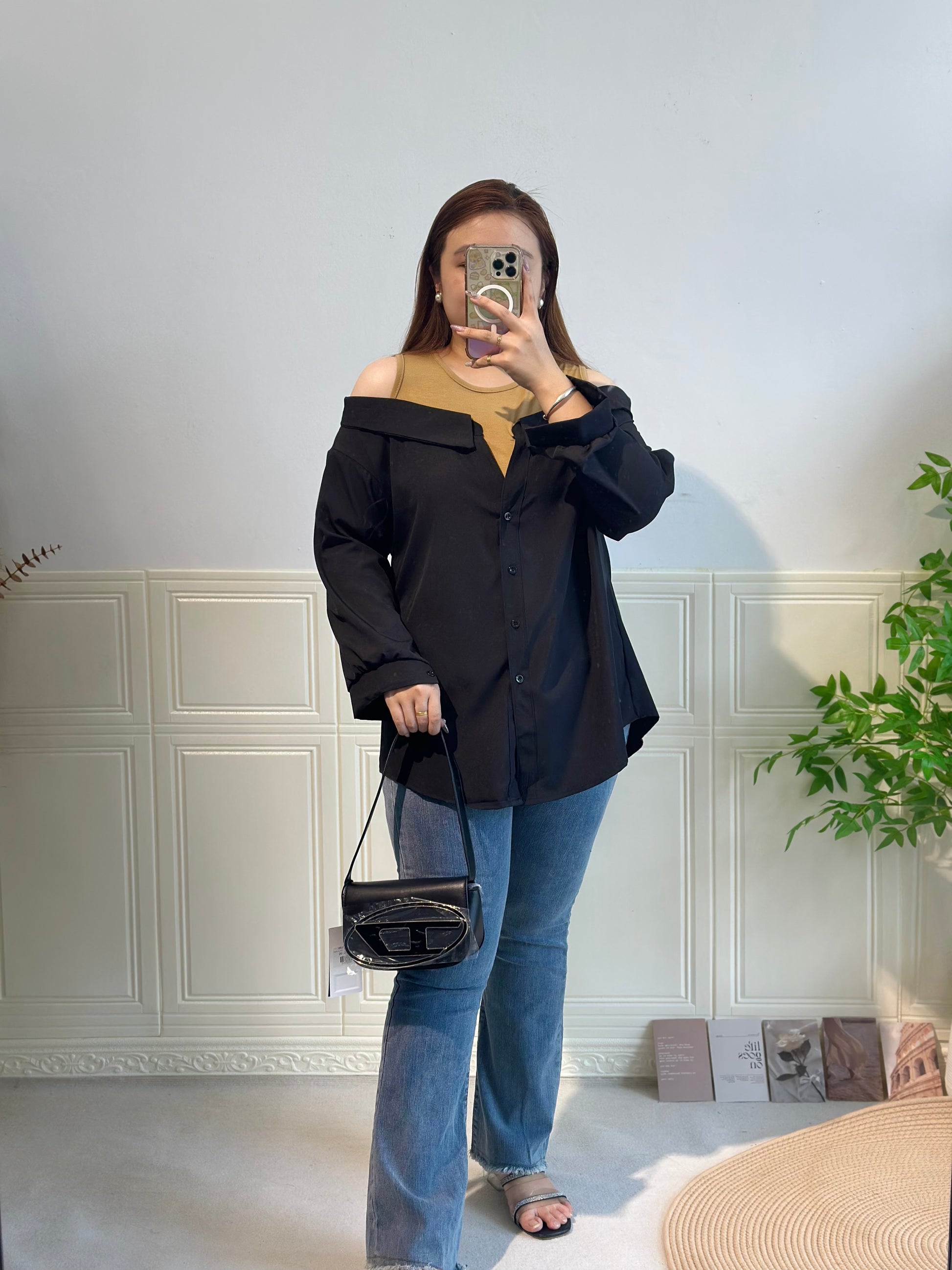 拼接衬衫假两件套上衣 #TC240