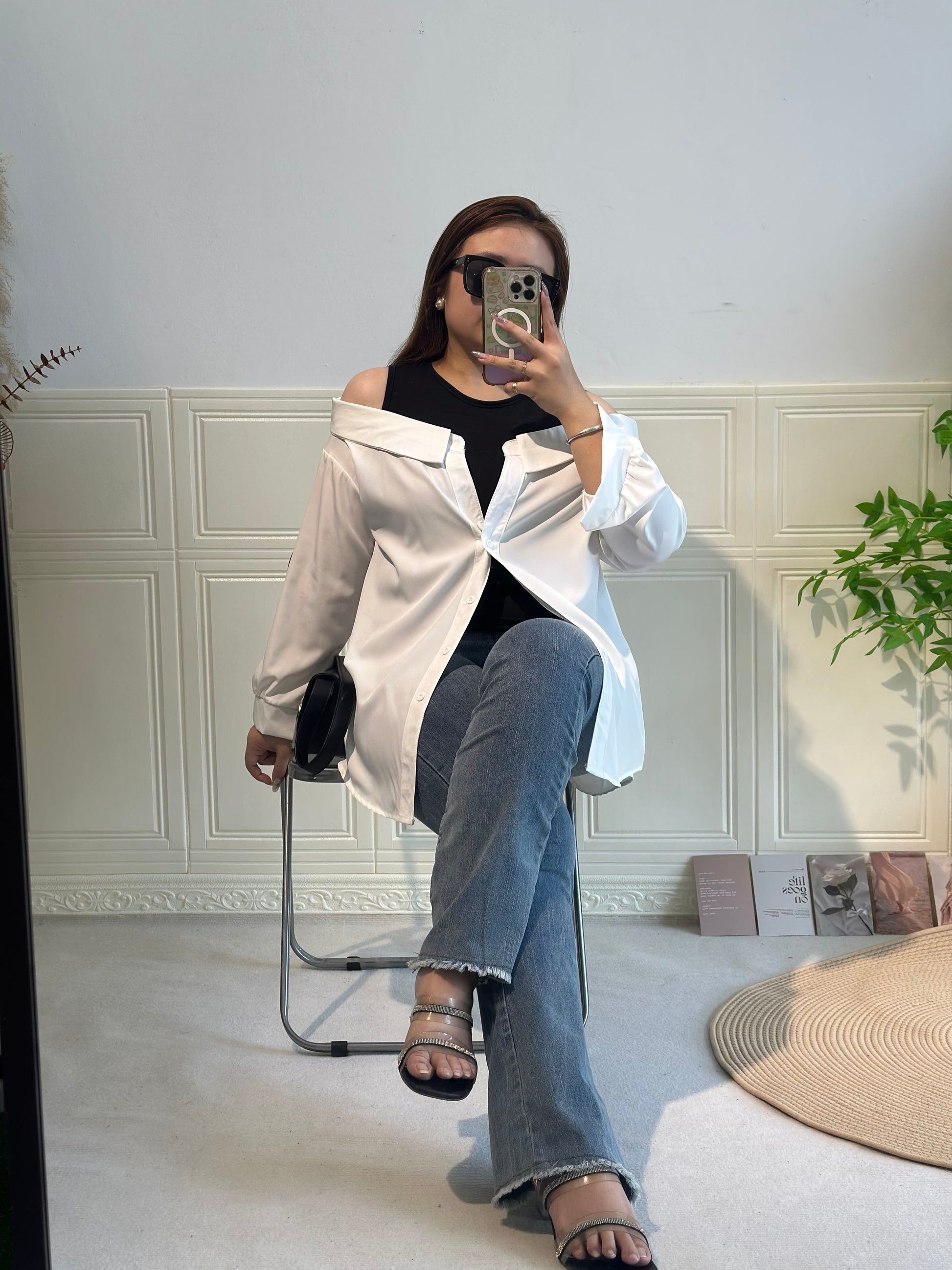 搭配个牛仔长裤 就可以出街啦💃