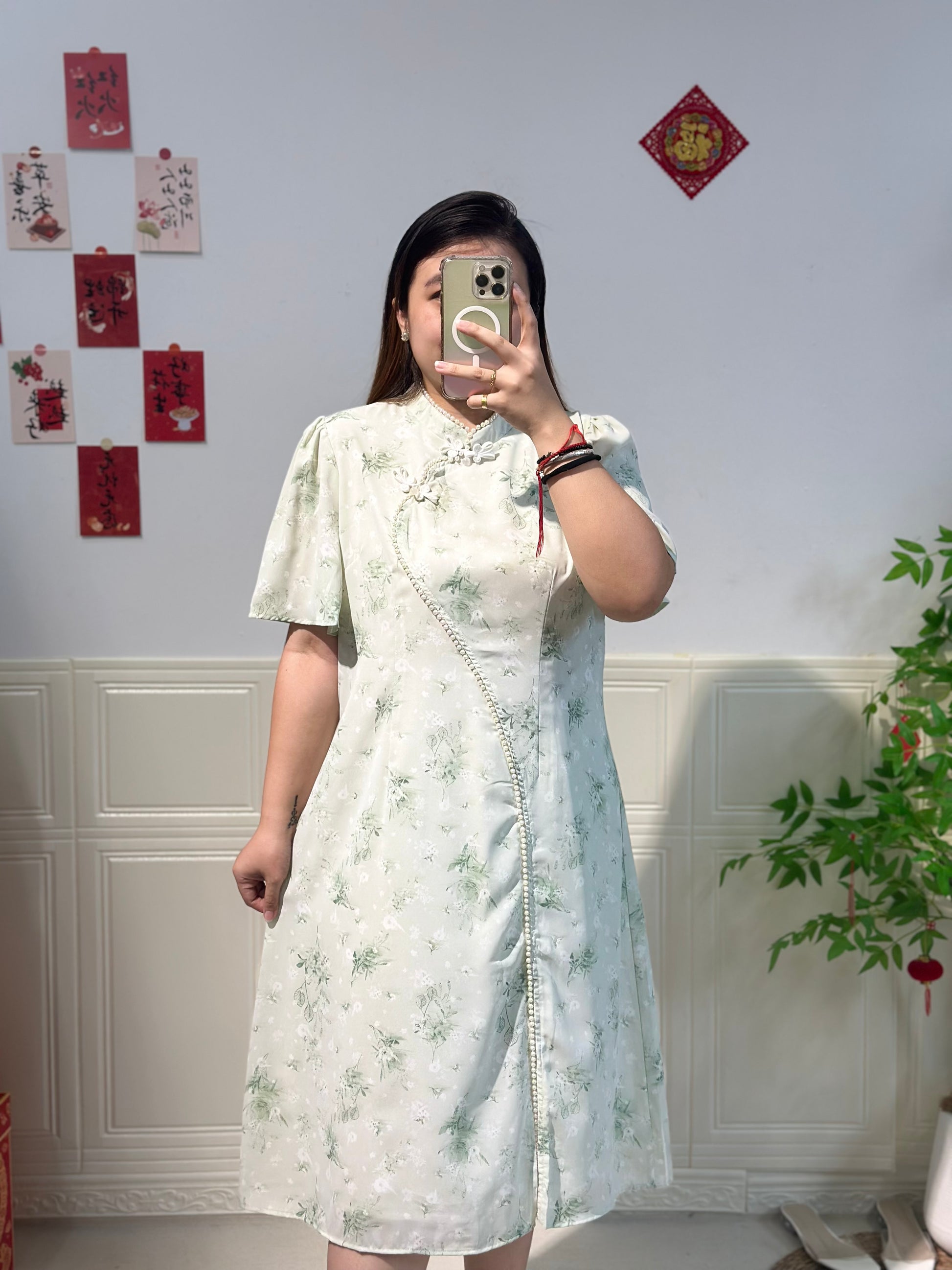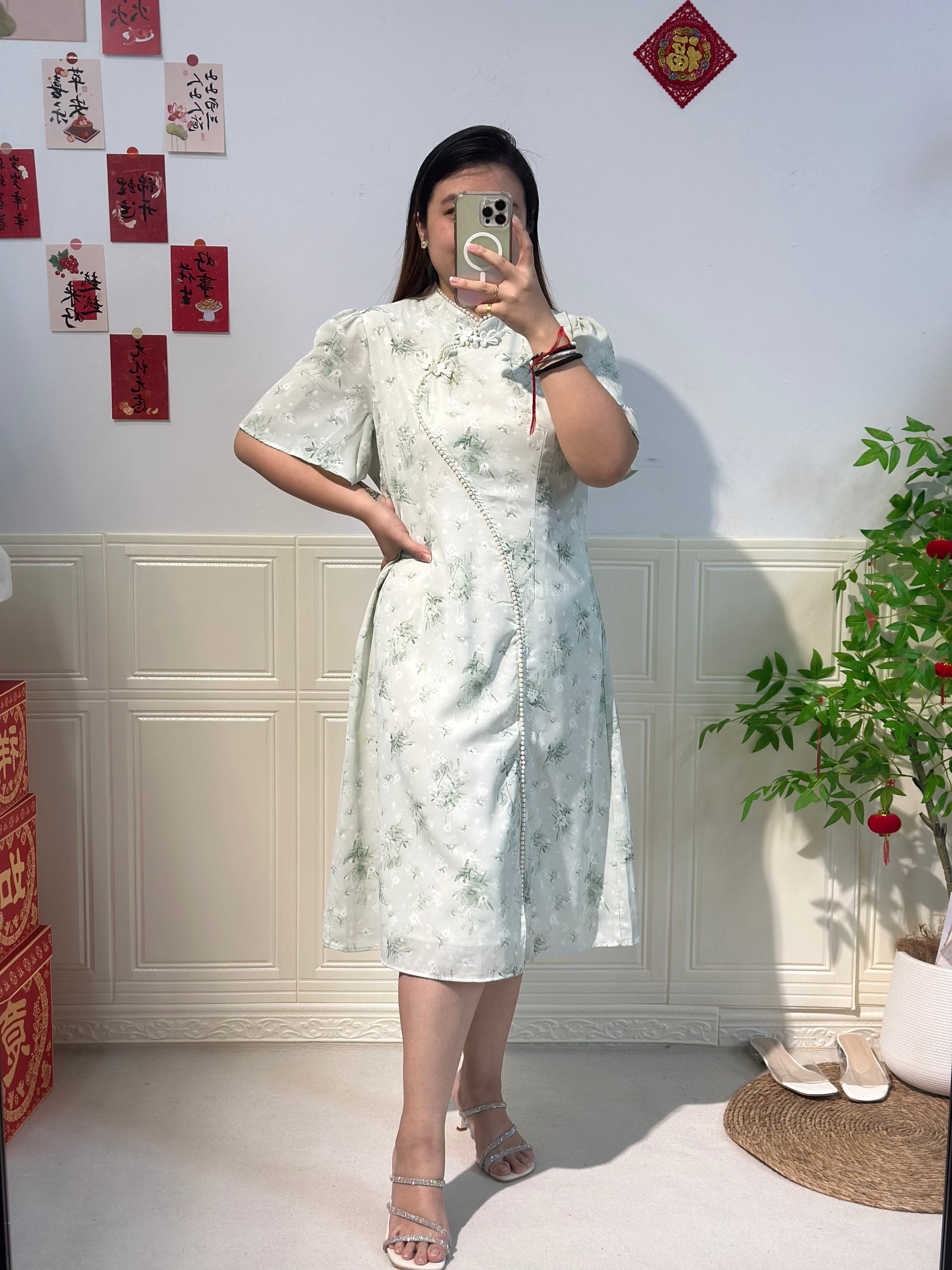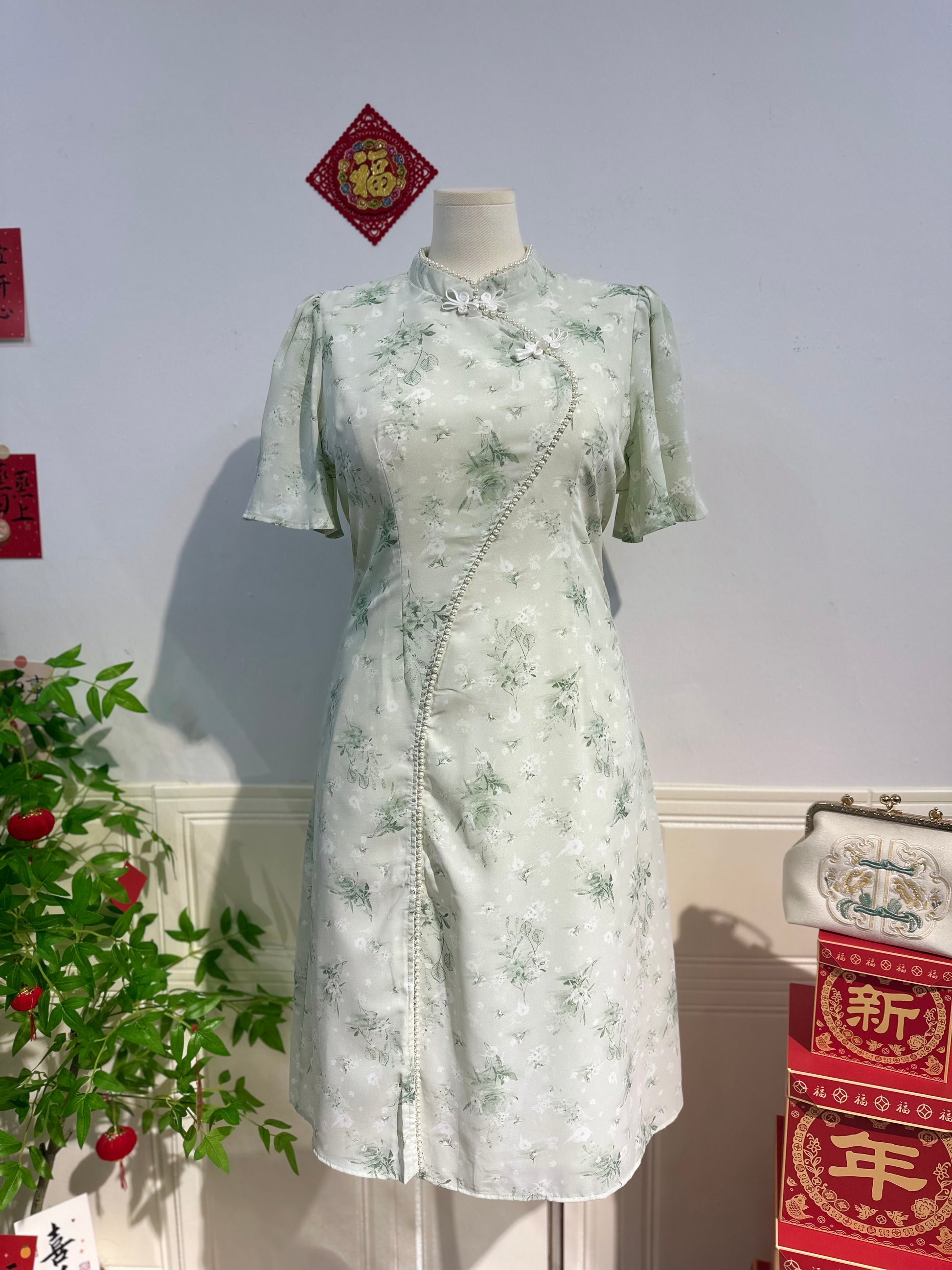 新中式珍珠雪纺旗袍 #TC219
