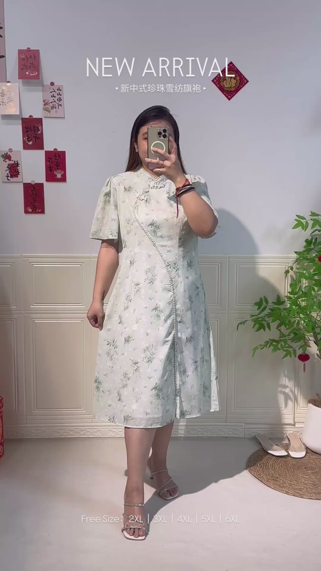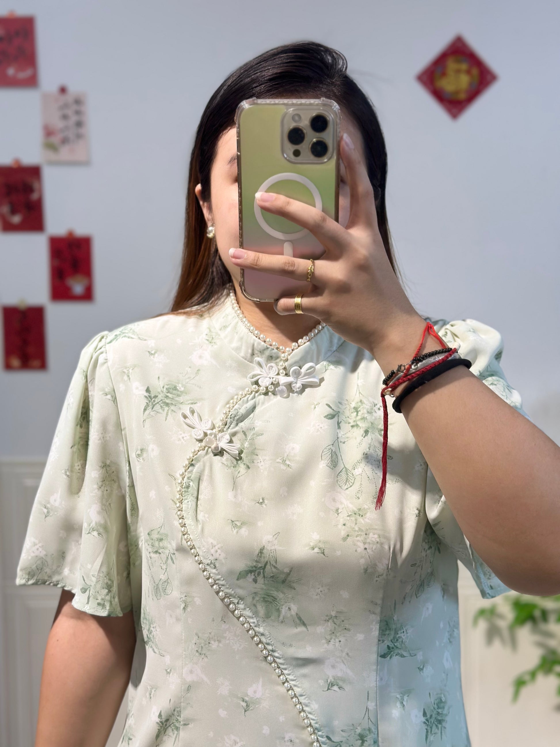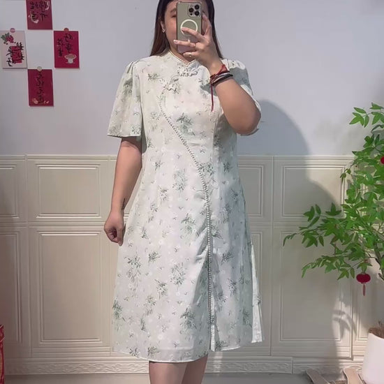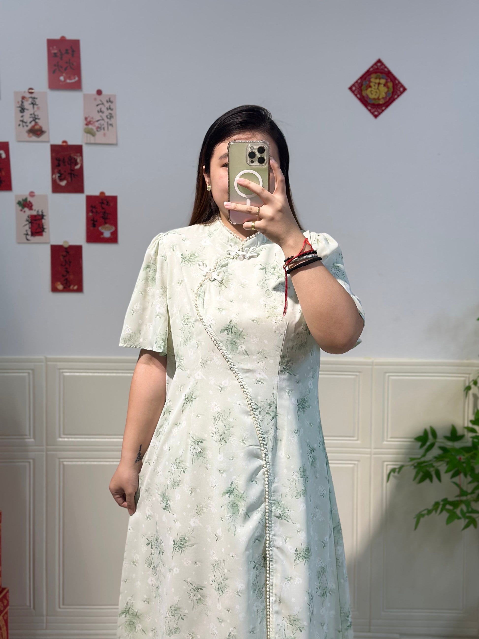 新中式珍珠雪纺旗袍 #TC219