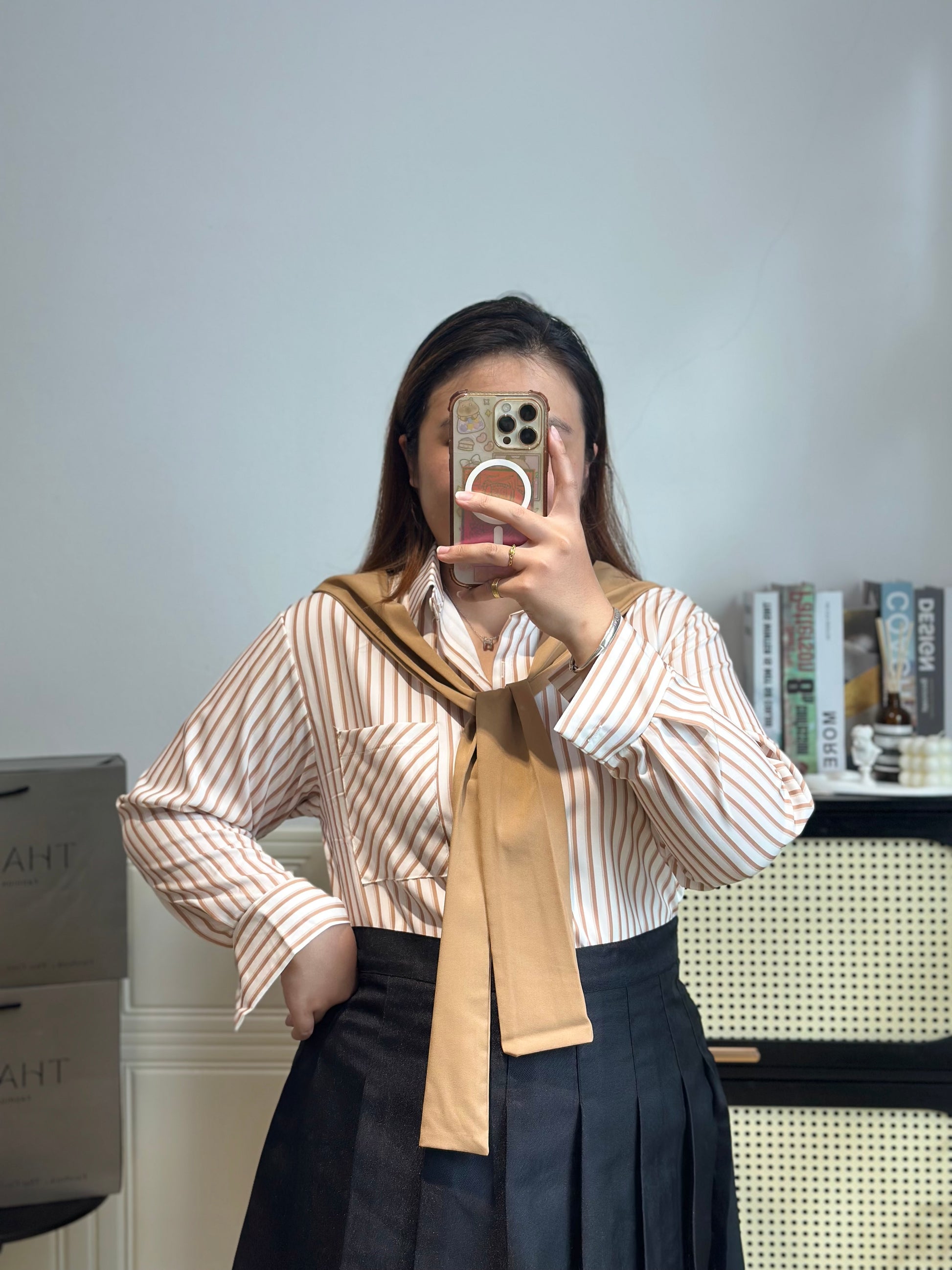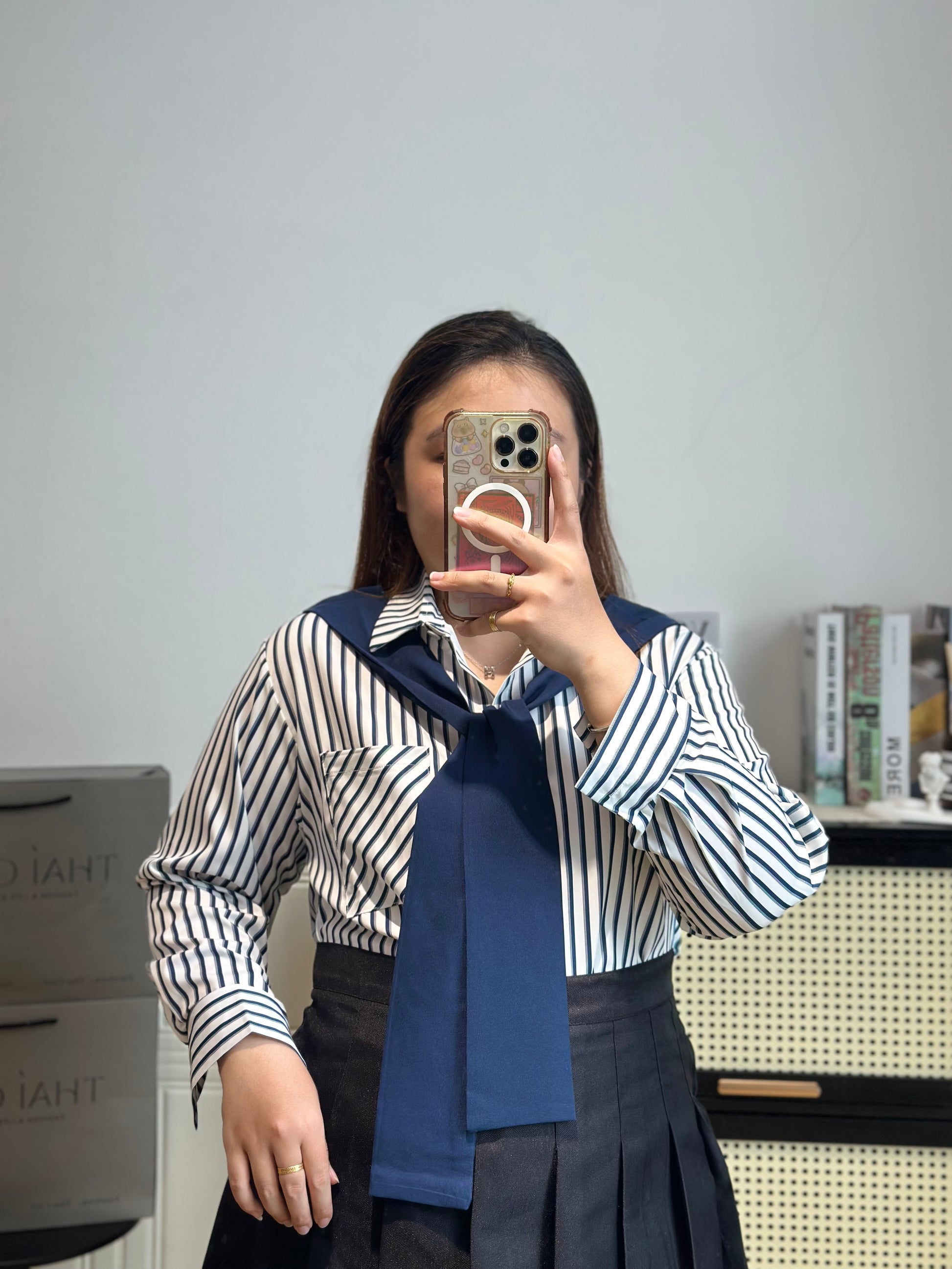💖- 韩系假两件披肩衬衫